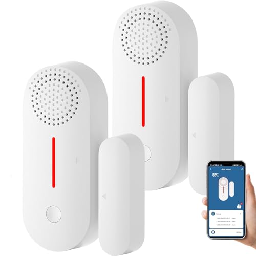 WiFi Door Sensor Alarm, Wireless Window Sensor with App Notification Burglar Alert, Contact Sensor for Home Security, Compatible with Alexa Google Assistant (2 Pack)