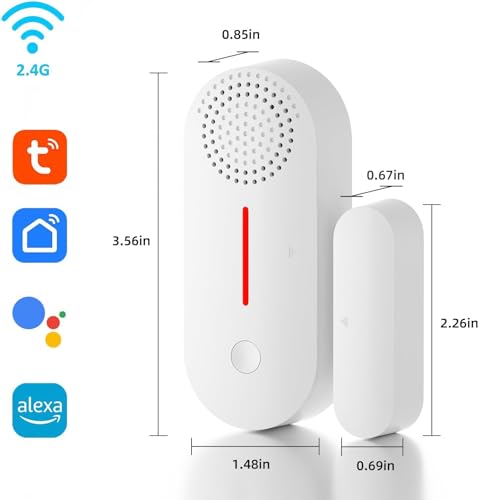 【Compatibility & Apps】- The door alarm is compatible with Andriod and IOS-tuya, smart life,google assistant, alexa. The door and window sensor is controlled by the Tuya Smart or Smart Life App. You’ll download the app from the app store, or by scanning the QR code at the package or the user manual.