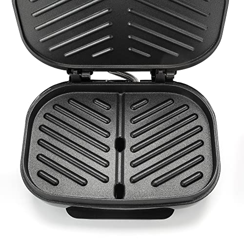 Dominion 2-Serving Classic Plate Electric Indoor Grill and Panini Press, Easy Storage & Clean, Perfect for Breakfast Grilled Cheese Egg & Steak, Black