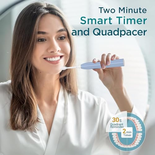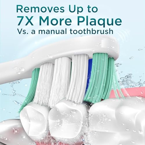 Superior Clean and Healthier Gums – Up to 40,000 VPM high vibration sonic toothbrush. Remove up to 99.99% of plaque and stains for a deep clean along the gumline and between the teeth. With soft flexible sides, the bristles contour to the shape of each tooth’s surface to provide 4x more surface contact and remove up to 10x more plaque from hard-to-reach areas for a deep clean.
