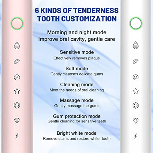 Specification: Electric Toothbrush with 8 Brush Heads, 42000vpm 6 Modes IPX7 Waterproof, Soft Electric Toothbrush for Adults – 2 Pack, White+Pink