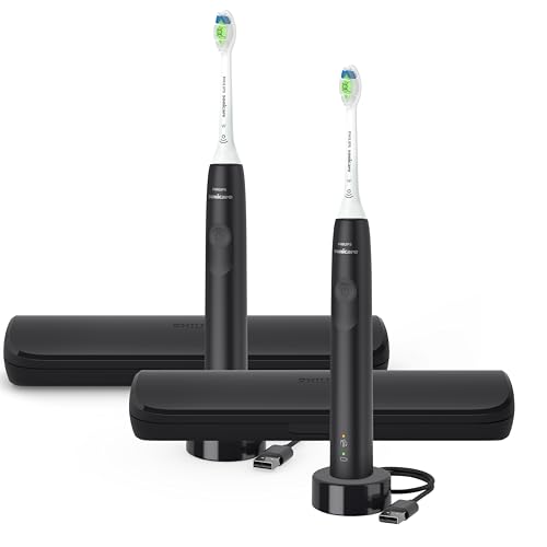 Philips Sonicare Electric Toothbrush with DiamondClean Brush Head 2-Pack Bundle, Rechargeable Electric Tooth Brush with Pressure Sensor, Sonic Electronic Toothbrush, Travel Case, Black