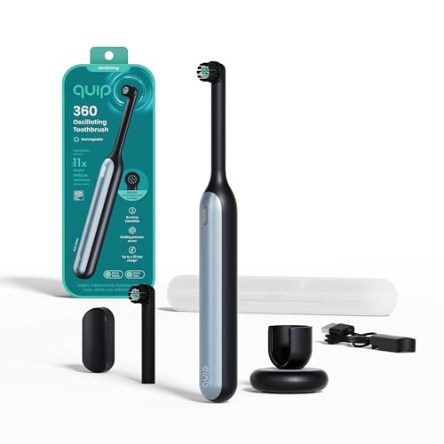 Specification: Quip 360 Oscillating Rechargeable Electric Toothbrush with Extra Brush Head – Soft Bristles, Pressure Sensor, 3 Intensities, 30-Day Battery Life, 2-Min Timer, Travel Case, Mirror Mount – Blue Stone