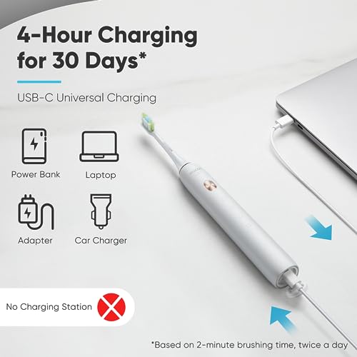 Soocas Electric Toothbrush for Adults, Rechargeable Electric Toothbrush with Travel Case, 3 Toothbrush Replacement Heads, 4 Modes 2 Mins Smart Timer, 4 Hours Charge Lasts 30 Days