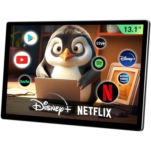 13.1-inch 2G RAM + 32G ROM Android 13 Multi-Functional Car TV Headrest Monitor for Back seat, Full High Definition QLED Touch Screen Video Player, Support WiFi/Bluetooth/Mobile Mirror Link/HDMI/RCA