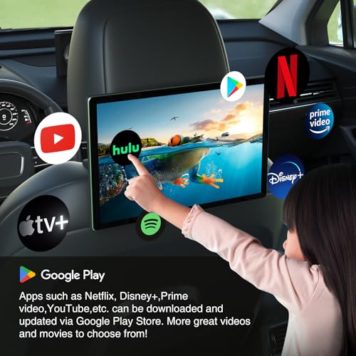 【Easy to Install, Plug and Play】Comes with cigarette lighter power cable and Mount, compatible with car seats with round bar mounts. Also comes with a 12V power adapter that can be utilized as an Android tablet indoors. Easy to install, plug and play, you’ll be able to listen to music, watch videos and use your favorite apps at any time, whether in the car or indoor.
