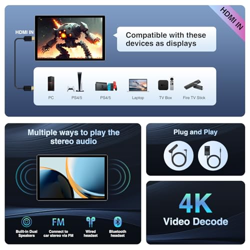 【Multiple Ways to Play the Stereo Audio】Built-in dual-band resonant speakers beef up stereo music and panoramic sound immersive viewing. This car TV can transmit audio signals to your car stereo via FM tuning, or you’ll be able to use wired headphones and Bluetooth headphones. With multiple sound playback methods, you’ll be able to choose freely to enjoy better sound quality and make you feel immersive!