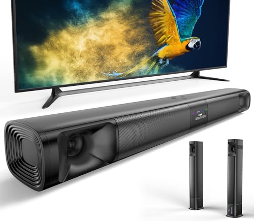 2 in 1 Detachable Design: Measuring a total of 31 inches, this TV sound bar includes a detachable design that saves space and facilitates easy installation. With this innovative design, you’ve the freedom to customize your audio setup to fit your preferences, making each movie night or gaming session an unforgettable experience. The widened base provides added stability, ensuring the speaker remains securely in place.
