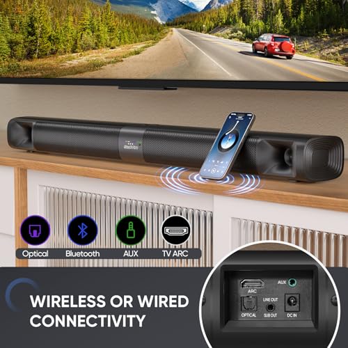 Versatile Connectivity: This Bluetooth soundbar offers quite a lot of connectivity options, including Bluetooth for wireless connections, in addition to TV-ARC, Optical, and AUX for wired connections. Additionally, The TV soundbar features an extra subwoofer out interface, allowing you to connect a dedicated subwoofer for enhanced bass response.
