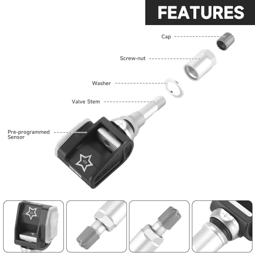 Function – Tire Pressure Monitoring System Sensor are made of alloy and abs plastic, manufactured in keeping with production standards, durable, high hardness, not easy to deform, shockproof, direct OE replacements that offer best fit, be sure your vehicle performs with optimum levels of safety.