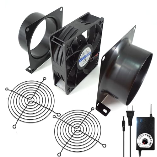4″ Axial Exhaust Fan, 3000RPM 120mm DC12V Dual Ball Bearings Air Exhaust Fume Smoke Extractor Fan Kit for DIY Soldering, 3D Laser, Paint Booth (4″ Duct Adapters, Mesh, Dimmer Included)