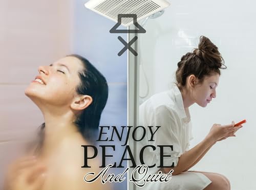 Super Quiet – 2.0 sone ventilation fan (approximately 40 decibels) 70 CFM Cubic Feet per Minute