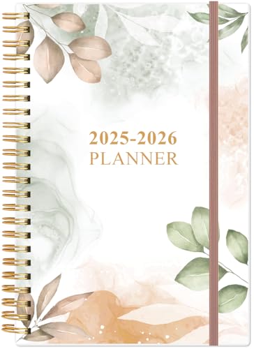 2025-2026 Planner – 18 Months Weekly & Monthly Planner from January 2025 – June 2026, Spiral Planner 2025 with Elastic Closure, Inner Pocket, Medium 5.8″ x 8.3″, Rose Leaf