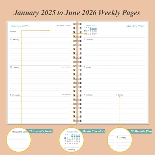 Specification: 2025-2026 Planner – 18 Months Weekly & Monthly Planner from January 2025 – June 2026, Spiral Planner 2025 with Elastic Closure, Inner Pocket, Medium 5.8″ x 8.3″, Rose Leaf