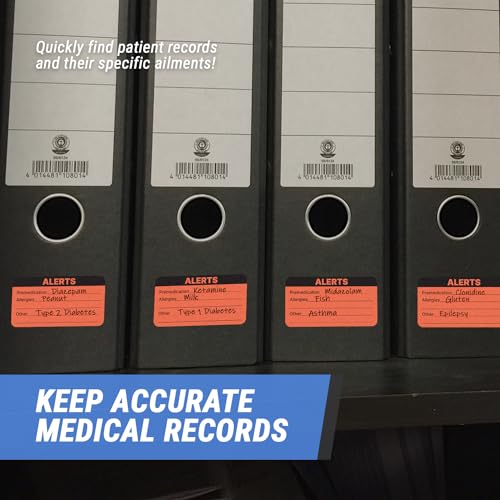 Specification: 600 Labels – 3.25 x 1.75 inch, Rectangle File Folder Labels/Medical Alert Premedications or Allergy Stickers for Patient Files [ Orange ] Self-Adhesive and Durable Stickers