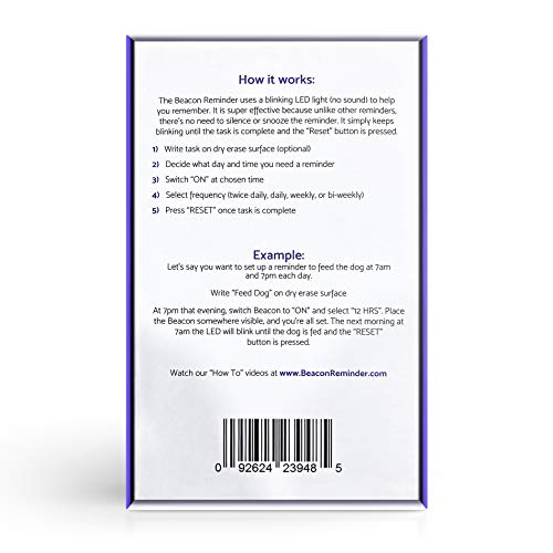 The Beacon Reminder is a simple reminder that in fact works. It is different than other reminder devices available on the market because instead of annoying alarms and buzzers, it uses a blinking LED light (no sound) that can assist you keep in mind that. This method is super effective because unlike other reminders, there’s no want to silence or snooze the reminder. It simply keeps blinking until the task is complete and the “Reset” button is pressed. Give one a try. You won’t be disappoiinted.