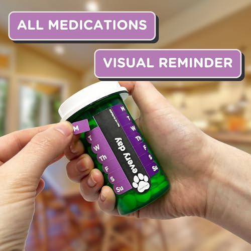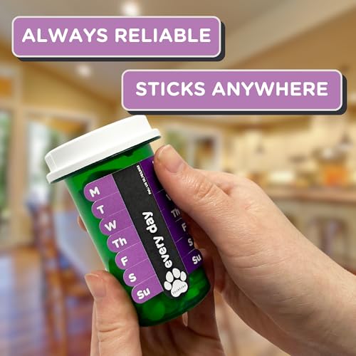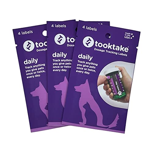 EASY TO USE: A simple stick a DAILY TOOKTAKE LABELS for PETS on the package/bottle. Remove the perforated tab when you give the dose. Know at a glance if your pet TOOK or still needs to TAKE it! Work great on medication, supplements, capsules, and vitamins for dogs, cats, and other pets. No need to count, sort, or program anything. Better than a large or small vitamin/pill storage organizer. A great pill organizer for travel with pets.