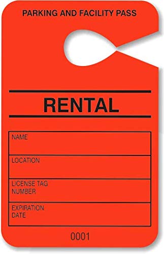 CAR PARKING PERMIT: Package comes with 100 numbered High Viz Neon numbered rearview mirror hang tags. Perfect for tracking and easy identification of unauthorized vehicles in your parking lot.