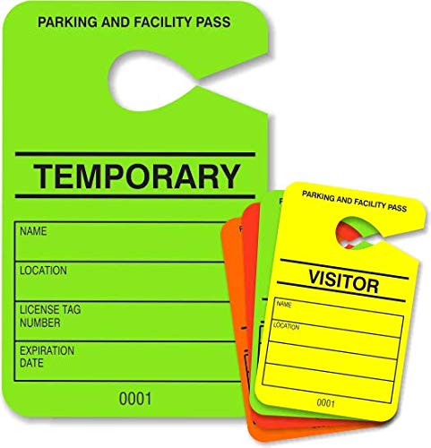 EFFECTIVE PARKING CONTROL: The parking tag is designed with white fonts over a green background and a hole cut out for hanging on the rearview mirror. This tag features space to fill out vehicle information, expiration date reminder and comes consecutively numbered for efficient parking area control.