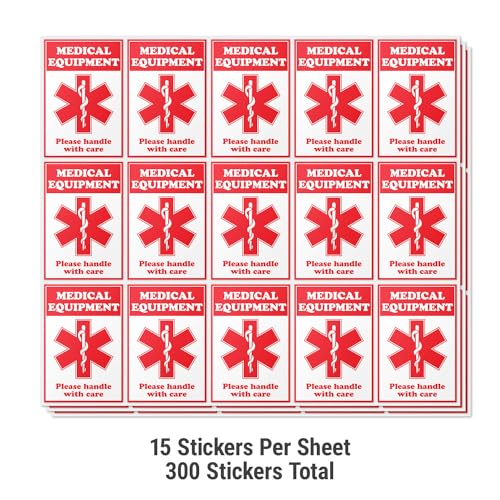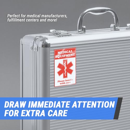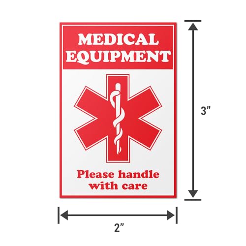 Specification: Medical Equipment Luggage Label Stickers – 2″ X 3″ Please Handle with Care for Medical Instruments or Devices During Travel or Shipping, Strong Adhesive & Highly Visible (300 Labels on Sheet)