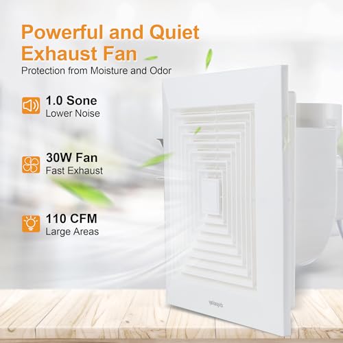 Large Air Volume: Quiet, energy efficient bathroom exhaust fan come with 110 CFM large airflow capacity to beef up the indoor air quality of your bathroom. This exhaust fan creates a more fit environment for you and your circle of relatives, promoting better respiratory health