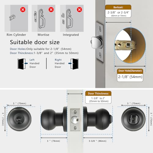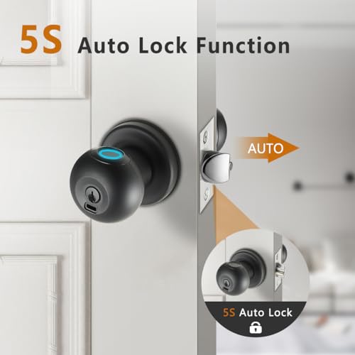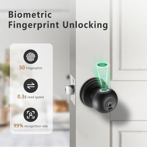 Specification: Fingerprint Door Lock, Smart Fingerprint Door Knob with Lock, Biometric Black Door Lock, Keyless Thumbprint Entry Door Lock for Bedrooms, Hotels, Apartments, Offices and Garages