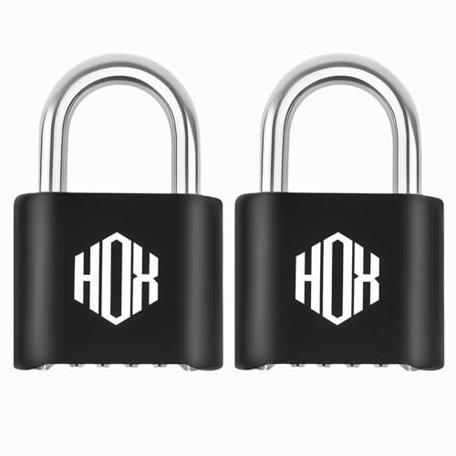 HOX 4 Digit Combination Lock, Outdoor Padlock – Heavy Duty Locker Lock with Hardened Steel Shackle, Waterproof Combo Lock for Gym Locker, Hasp Storage, Shed, Fence (Black, 2 Pack)