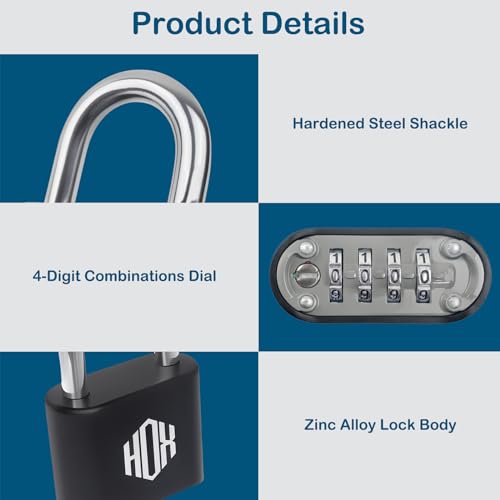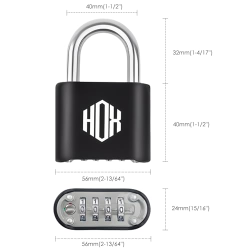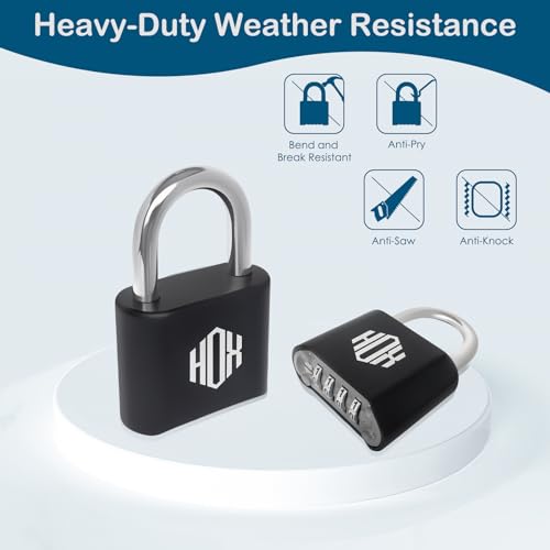 Specification: HOX 4 Digit Combination Lock, Outdoor Padlock – Heavy Duty Locker Lock with Hardened Steel Shackle, Waterproof Combo Lock for Gym Locker, Hasp Storage, Shed, Fence (Black, 2 Pack)
