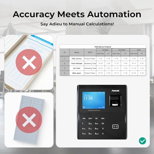 ANVIZ Time Clocks for Employees Small Business – CX2 Fingerprint Biometric Clock in and Out Machine – with Professional Cloud Software, Black