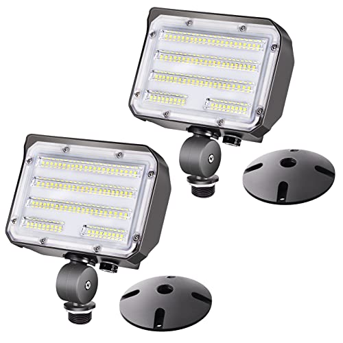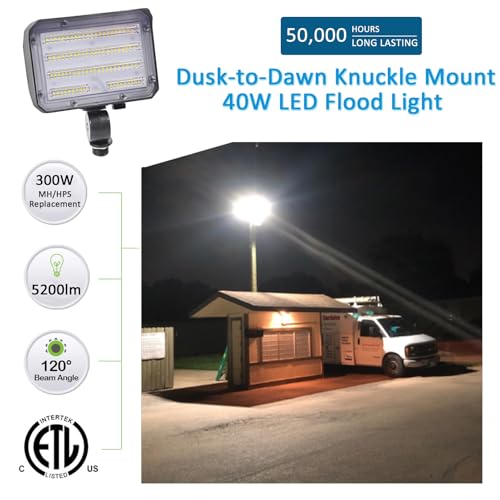 Specification: 60W LED Knuckle Mount Flood Light, Outdoor Security Floodlights Fixture with Base, Dusk-to-Dawn Photocell Daylight AC100-277V 7,800lm(300W Equivalent) IP65 Waterproof for Entrance Yard(2Pack)