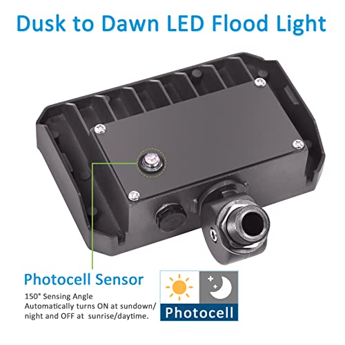 DUSK-TO-DAWN PHOTOCELL INCLUDED AND 2 INSTALLATION OPTIONS : This LED outdoor flood Light has built-in dusk-to-dawn photocell sensor, automatically turns ON at sundown/night and OFF at sunrise/daytime. Comes with base for wall mount, AC110-277V input, which makes this yard light are more adaptable to a larger application range and cuts down unnecessary wastage caused by voltage instability.
