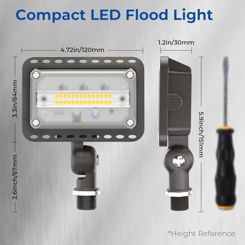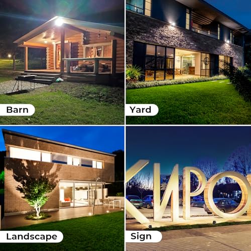 【IP65 Waterproof & Heat Dissipation】The LED flood light rated IP65 waterproof is capable of performing well even in damp conditions. Besides, carfted with die-casting Aluminum housing, the outdoor flood light boasts exceptional heat dissipation, keeping light decay below 5%, which extends the lifespan to 50,000 hours.