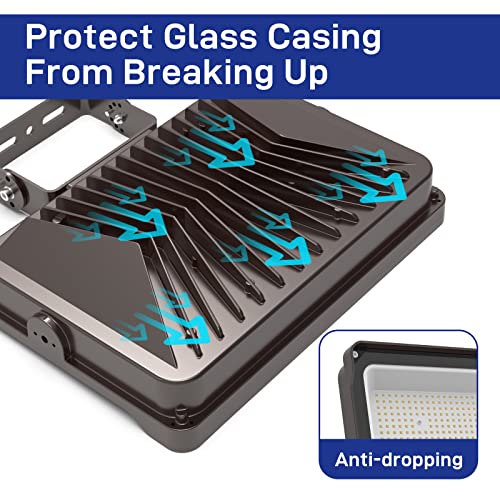 No Worry for Safety: This flood light is cUL certification listed, ensuring utmost protection for your home and building. With heavy-duty die-cast aluminum housing, tempered glass lens, and smart cooling fins, safety and longevity are prioritized. These outdoor flood lights outlast traditional luminaires by 10 times, giving you peace of mind and long-lasting illumination.