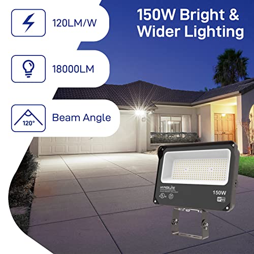 HYPERLITE LED Flood Light 150W 2 Pack 18000LM 5000K Daylight IP65 Waterproof Outdoor Floodlights UL Certified for Court,Garden,Warehouse
