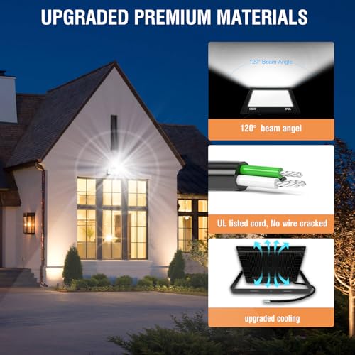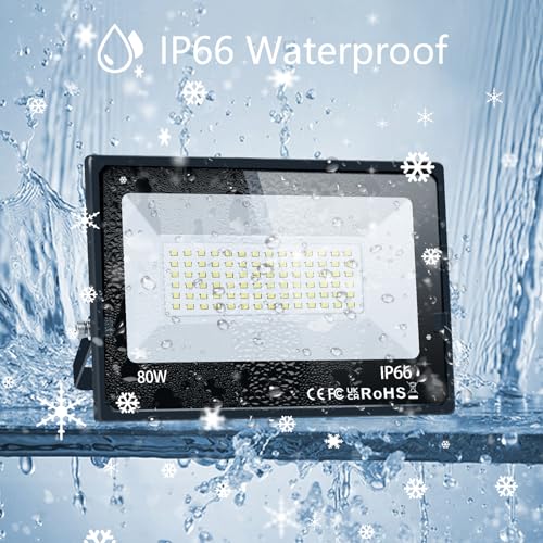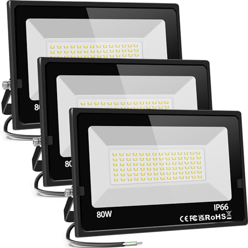 Specification: LED Outdoor Flood Lights 80W 3Pack,Upgraded 8000LM Super Bright Spot Security Lights IP66 Waterproof, Cooling & Lamp Beads, 5000K Exterior Outside FloodLights for Yard Garage Stadium