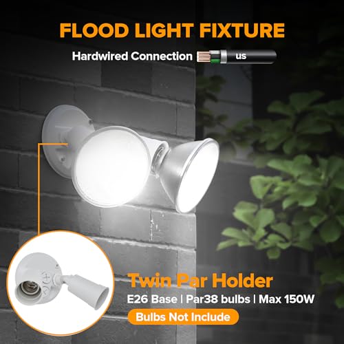 Specification: LUTEC 2 Pack Adjustable Twin Par Holder Outdoor Flood Lights, Switch Controlled Security Lights, Floodlights Fixture, Waterproof Exterior Max 300 Watt Par38 Flood Light for Garage, Yard, Porch-White