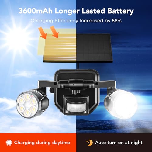 OREiN Solar Outdoor Lights 3600mAh 450° Superwide Adjustment Solar Flood Lights 180° Motion Sensor Outdoor Lights with 3 Modes IP65 Waterproof Solar Motion Lights Outdoor for Porch, Garage, Patio