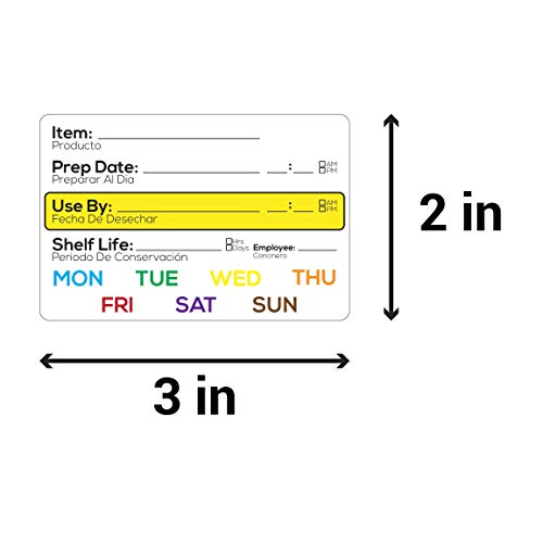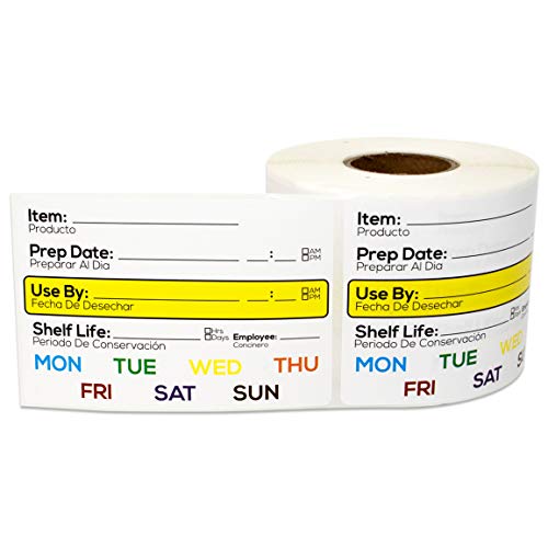 2″ x 3″ (50.8mm x 76.2mm) Freezer Food Rotation Food Date Labels, Freezer food Storage Labels – Color Coded Day of the Week, Name of Item, Person of Initials, Prep Date & Time, Use By in English & Spanish – 300 Labels/Roll, Total 600 FoodSaver Labels