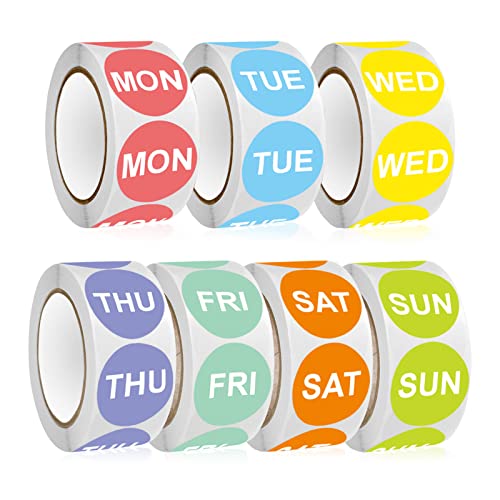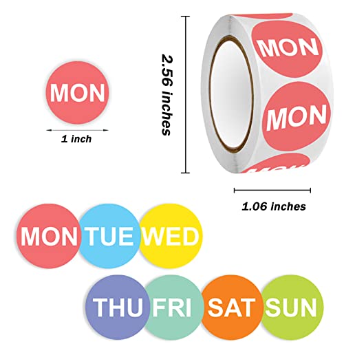 7 Day of The Week Sticker, 1″ Round Day Dot Food Rotation Labels – 3500 Pcs Date Stickers for Food Containers (500 Labels/Roll)