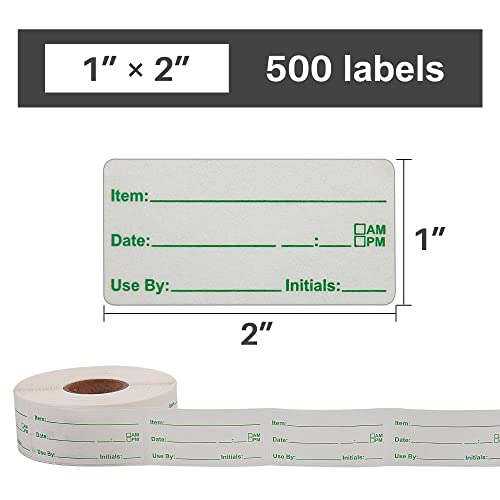 Specification: L LIKED 500 Stickers Use by 1 x 2 Inch Dissolvable Labels for Food Containers Prep roll of 500 (Green)