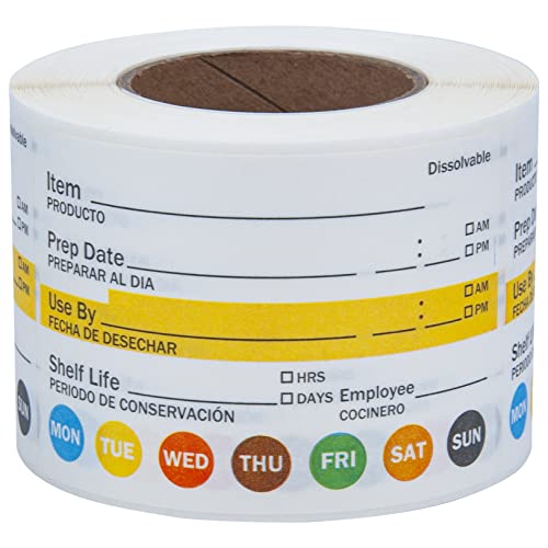 Dissolvable Shelf Life Labels for Food Rotation Use By Food Preparation Days Of The Week Prep Date Stickers