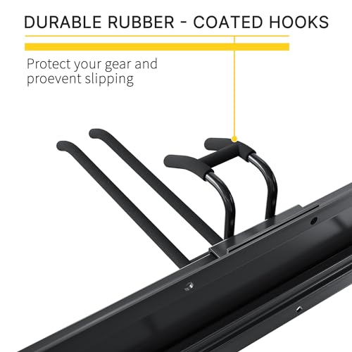 Specification: Garage Organization, Garage Tool Organizer Wall Mount with 48 inches Rails and 6 Double-layer Hooks, Tool Organizer Rack Garage Hanging Storage Rack For Yard Tools, Shovel, Chair, Snowborad