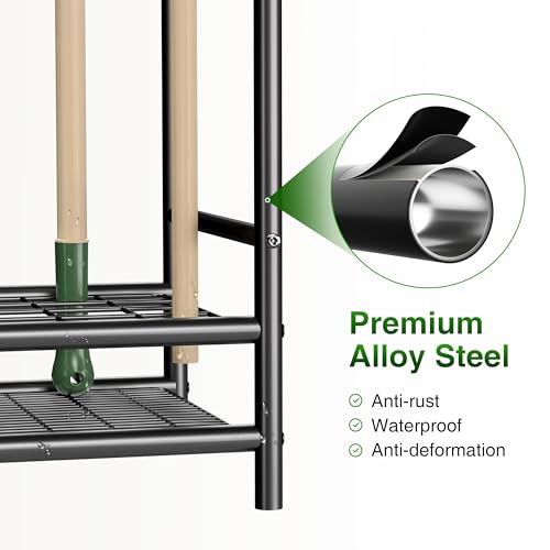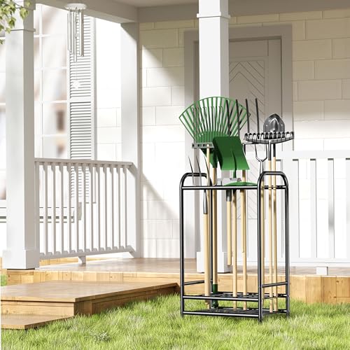 Metal Garden Tool Organizer – Yard Tool Organizer Up to 35 Long-Handled Tools – Heavy Duty Garden Tool Storage Yard Tool Holder for Brooms Rakes and Shovels in Garage Yard and Shed.