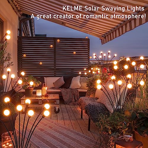 Specification: 2 Pack Solar Garden Lights, KELME 16 LED Upgraded Firefly Garden Lights Solar Outdoor, Bright High Flexible Swaying Outdoor Solar Lights for Outside Yard Garden Christmas Decorations Gifts, Warm White