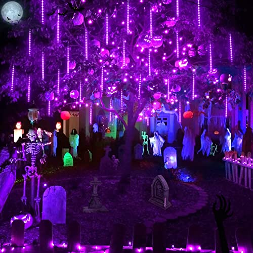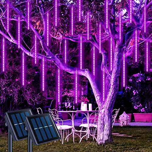 Specification: JMEXSUSS 2 Pack Purple Solar Halloween Lights, 16 Tube 288 LED Solar Meteor Shower Rain Lights, Solar Christmas Lights Outdoor Waterproof for Tree Halloween Christmas Decorations