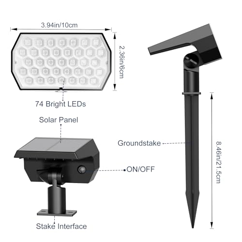 2-in-1 Functionality & Easy Installation: These versatile outdoor solar lights can be utilized as landscape lights or wall lights. Installation is a breeze: use the ground stakes to position them in your lawn as solar spotlights, or mount them on the wall with the included screws for a stylish wall light effect. No wiring or power supply is required, making them ideal for gardens, yards, pathways, porches, patios, and perfect for seasonal decorations.