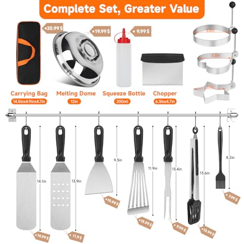 Griddle Accessories Kit,139Pcs Stainless Steel Flat Top Grill Accessories Set,Griddle Grill Tools Set for Blackstone and Camp Chef,Grill BBQ Set w/Basting Cover, Spatula,Scraper,Egg Ring,Tray for BBQ