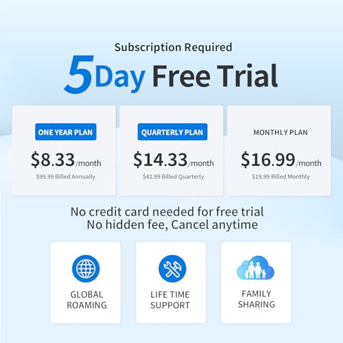 【5-DAY FREE TRIAL】Satisfaction comes first. After the trial, choose $8.33/month with a 1-year plan ($99.99 total) or monthly/quarterly plan. SIM service included. The App supports English, Español, and Japanese