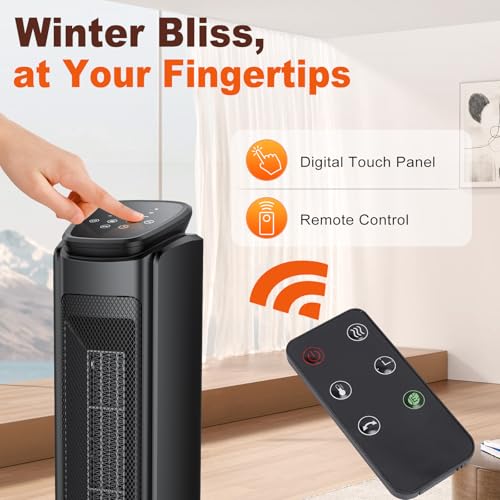 Specification: 30” Tower Space Heaters for Indoor Use – 1500W Oscillating Electric Heater with Remote, Thermostat, and Timer – Safe and Quiet Ceramic Heater for Large Room, Office