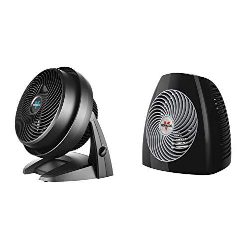 Vornado 630 Mid-Size Whole Room Air Circulator Fan & MVH Vortex Heater with 3 Heat Settings, Adjustable Thermostat, Tip-Over Protection, Auto Safety Shut-Off System, Black